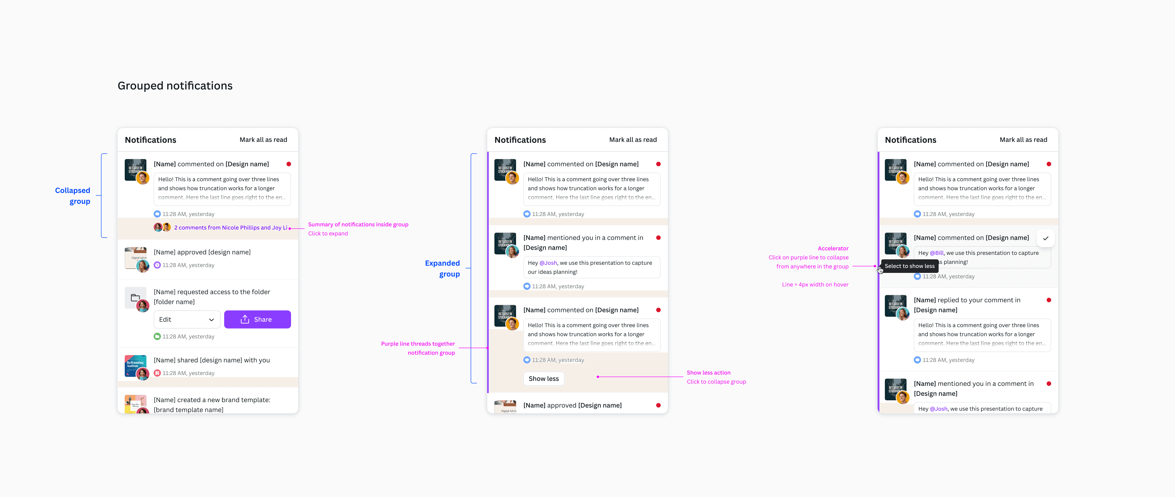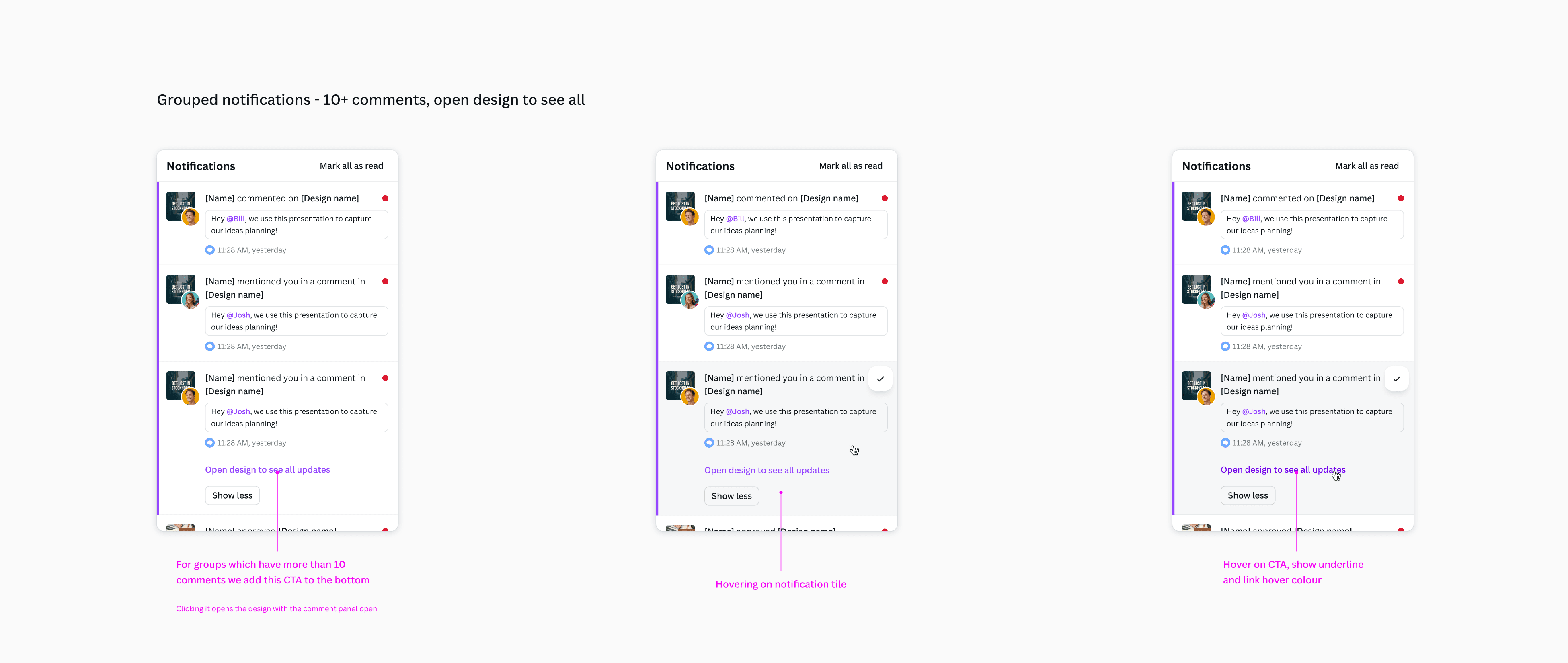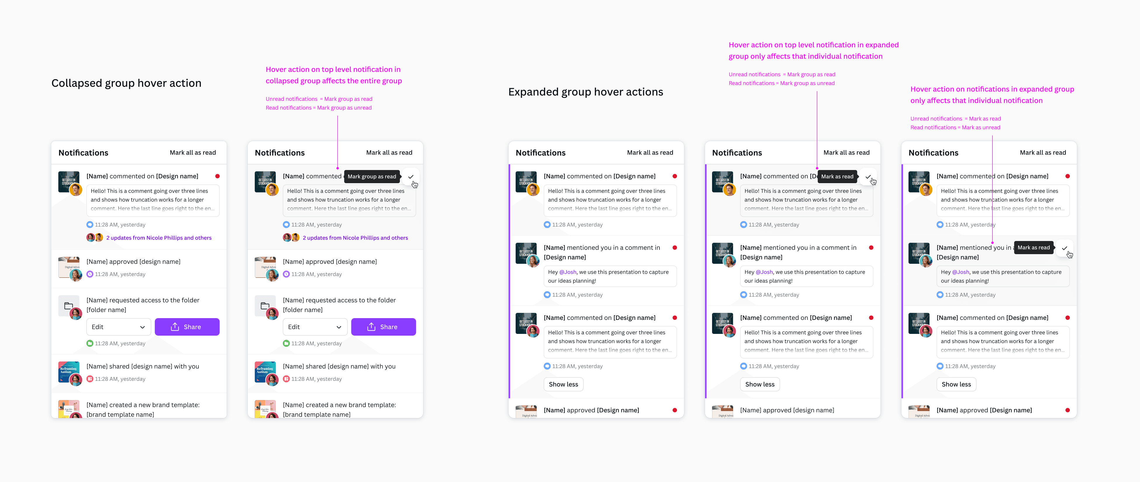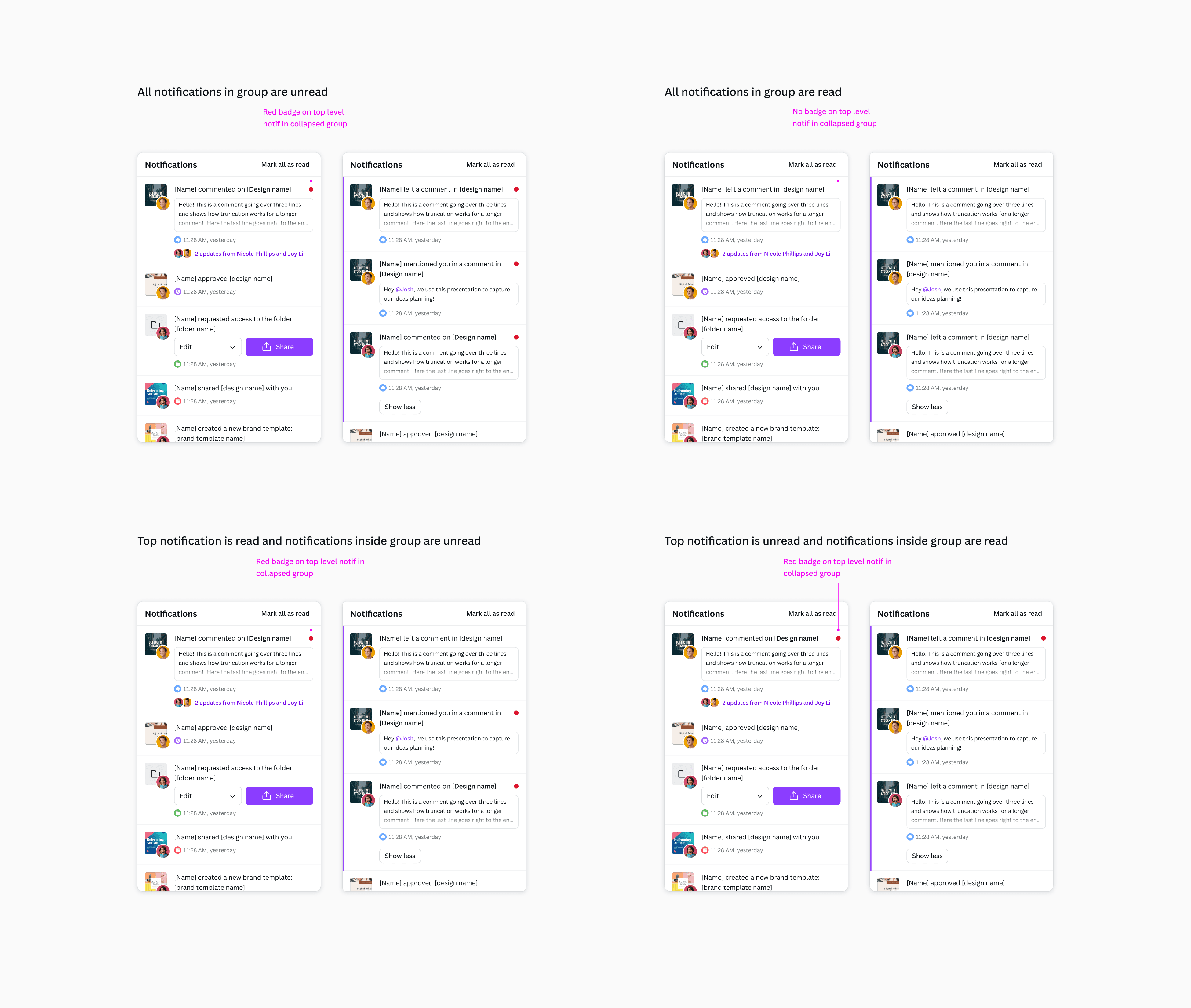 The experience was simplified by removing the task-based framework and introducing grouping for high-volume notifications. Notifications are now easier to scan, clearer to understand, and help users focus on what matters without being overwhelmed.